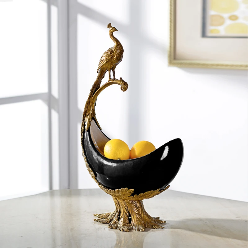 Retro vintage brass antique decoration for hotel living room home with crane decor fruit plate