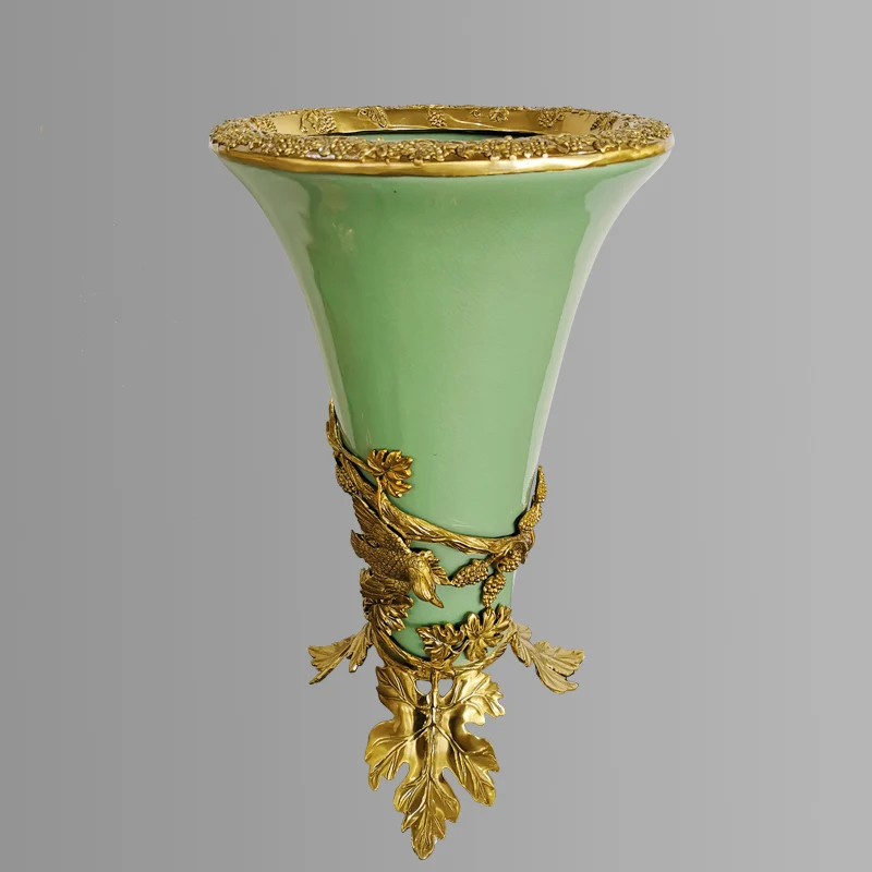 China jardiniere for projects handmade crackled porcelain green home accessories with brass fittings decorative porcelain vase