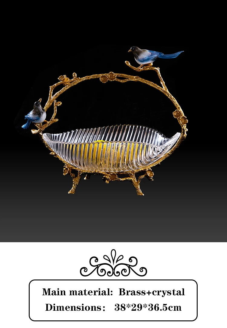 Retro vintage brass antique decoration for hotel living room home with crane decor fruit plate
