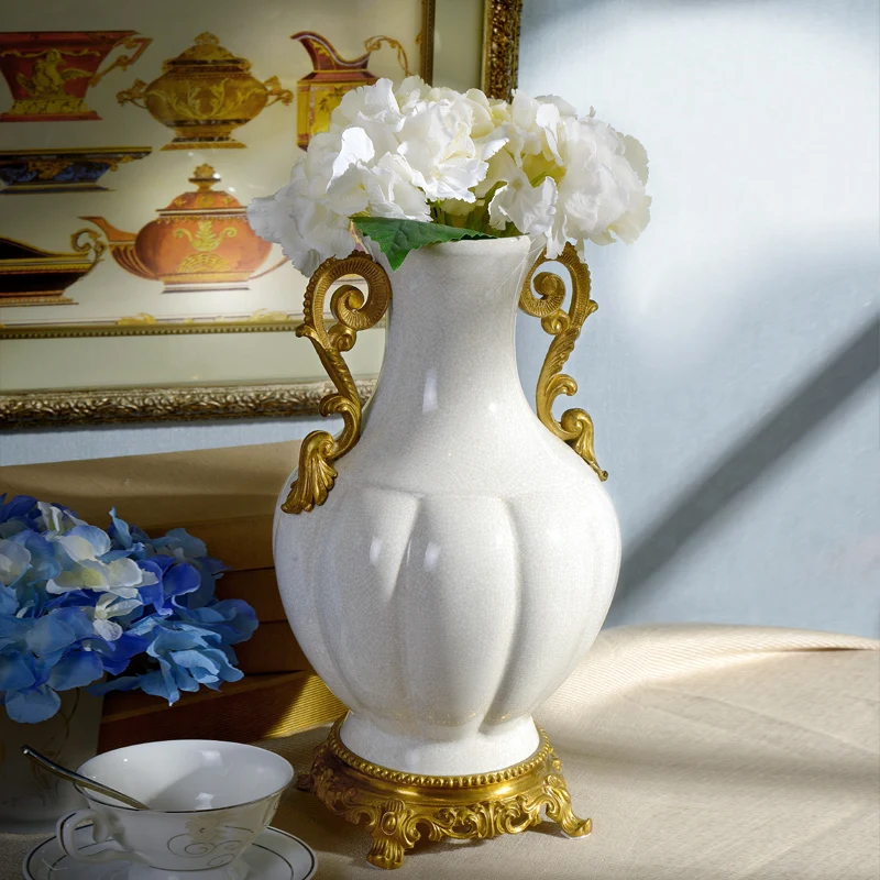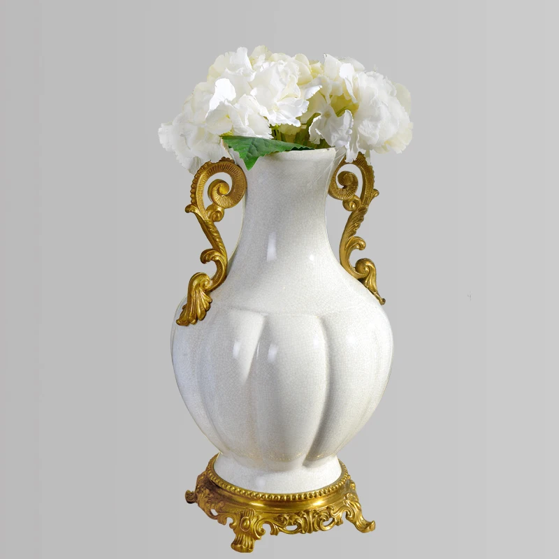 Factory direct Luxury white ceramic Vase brass Bisque porcelain Vase For House Decoration Interior Accessories