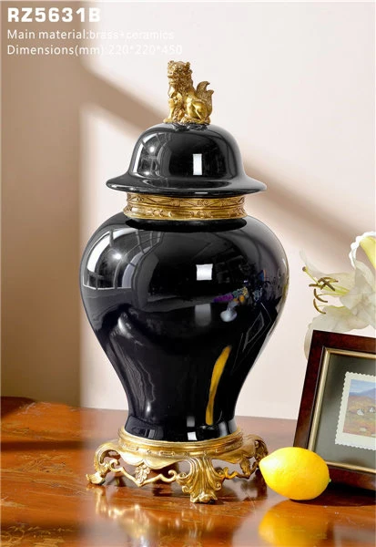 Europe style home decor black brass ceramic jar porcelain vase flower with lids for  home decorative