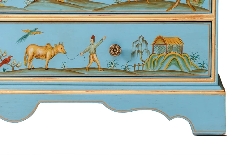 Gold Gilding Wooden Curio Cabinets With Flowers Paint Motif Hand Painted Secretary Cabinet with drawer Front Desk with beautiful hand printed picture and hand painting to decorate. This furniture is decorated in antique decoration.
