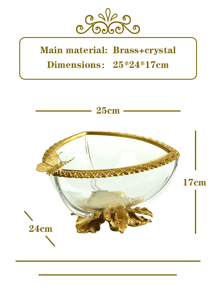 Retro vintage brass antique decoration for hotel living room home with crane decor fruit plate