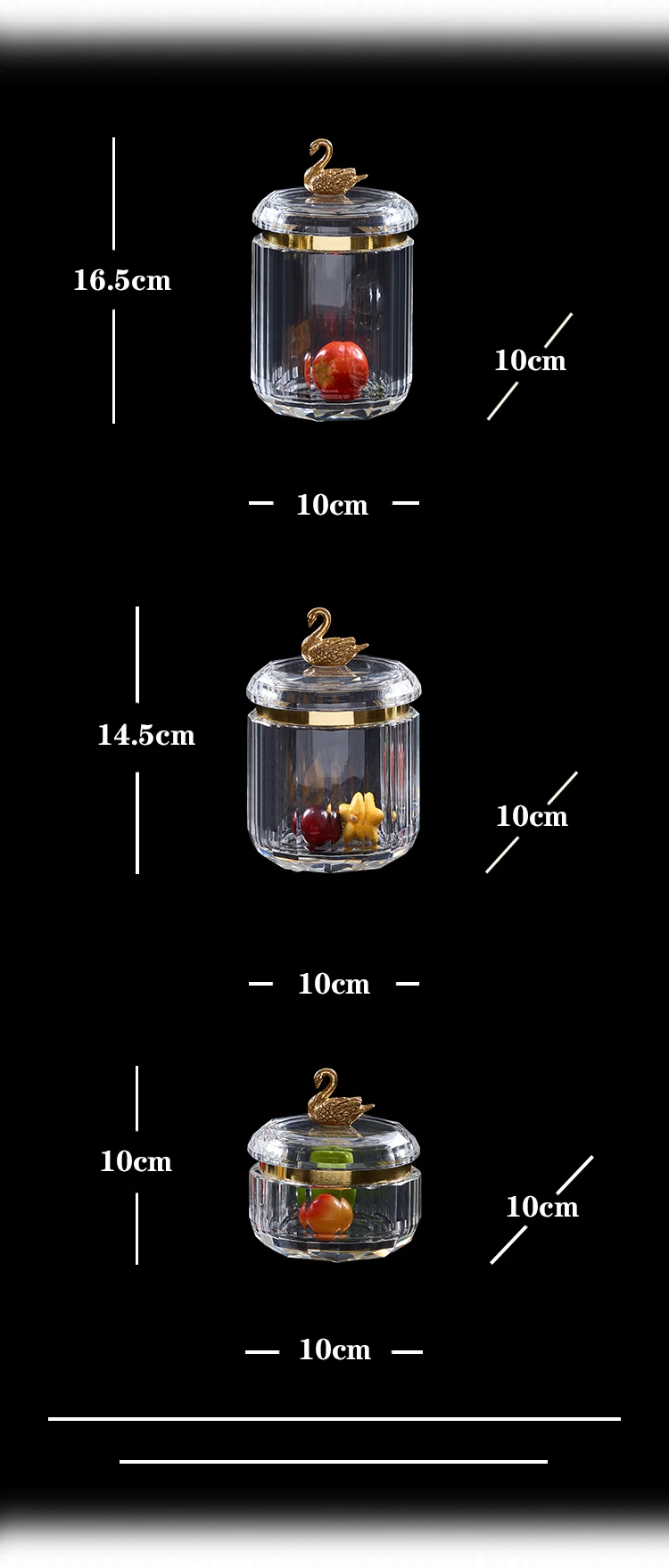 Luxury Party Wedding Home Decor Modern Accent Piece Copper Carving Swan K9 Crystal Candy Jar with Lid Set