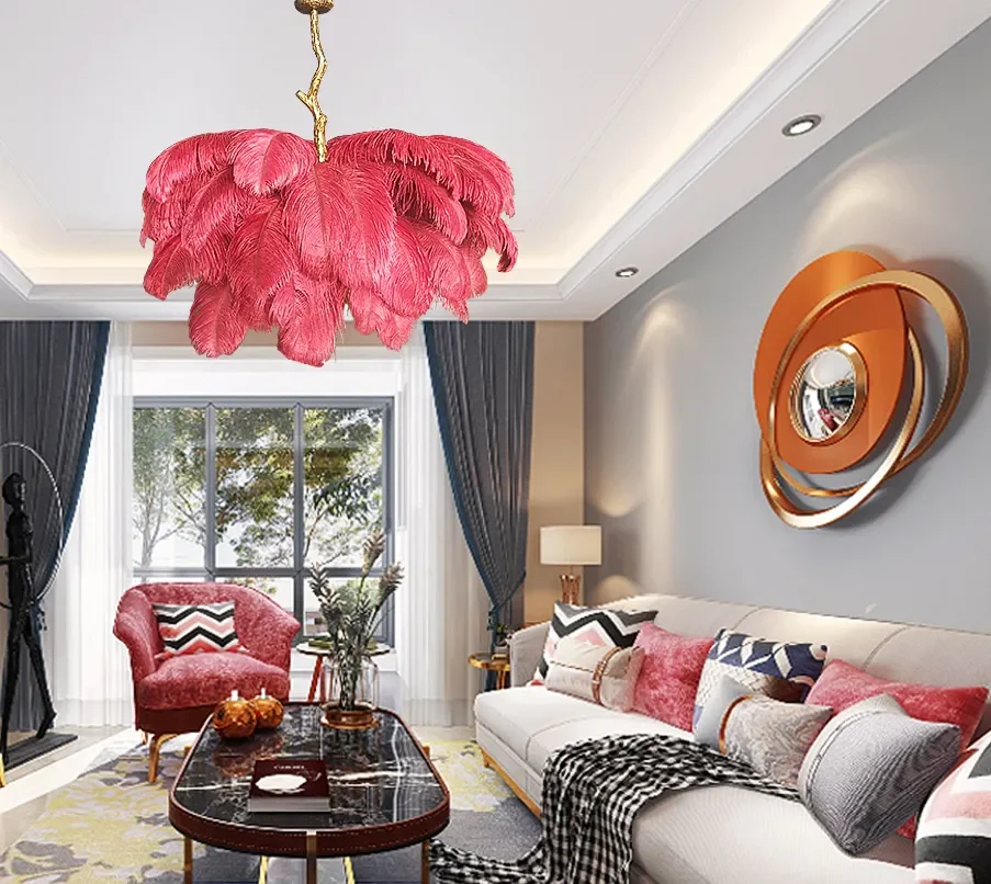 Luxury Star Hotel Club Villa Restaurant Modern Fashion Home Decor Interior Ceiling Pendant Light Ostrich Feather Lamp Chandelier