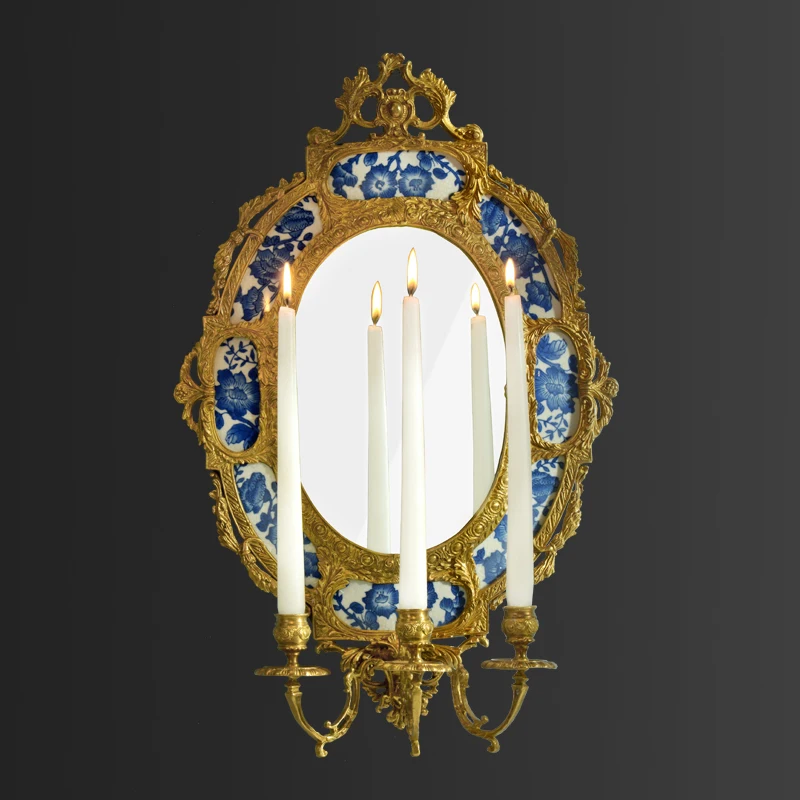Exquisite Workmanship Imperial Palace Project Gold Brass Carving Royal Blue Ceramics Ceiling Chandeliers & Pendant Lights